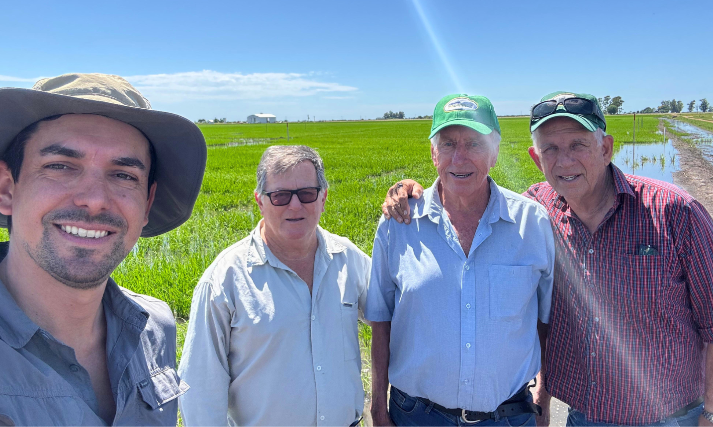 El jueves 10 de diciembre visitaron el campo experimental el ingeniero Rodolfo Vicino, responsable del programa de mejoramiento genético de arroz del Ministerio de la Producción de Santa Fe, y el ingeniero Oscar Henderson, vicepresidente de la Fundación Proarroz. Los especialistas recorrieron las instalaciones junto al ingeniero Hugo Müller, presidente de la institución, y al ingeniero Edgar Orcellet, responsable de producción del campo experimental. Durante la recorrida, pudieron constatar que los lotes de arroz evolucionan favorablemente.