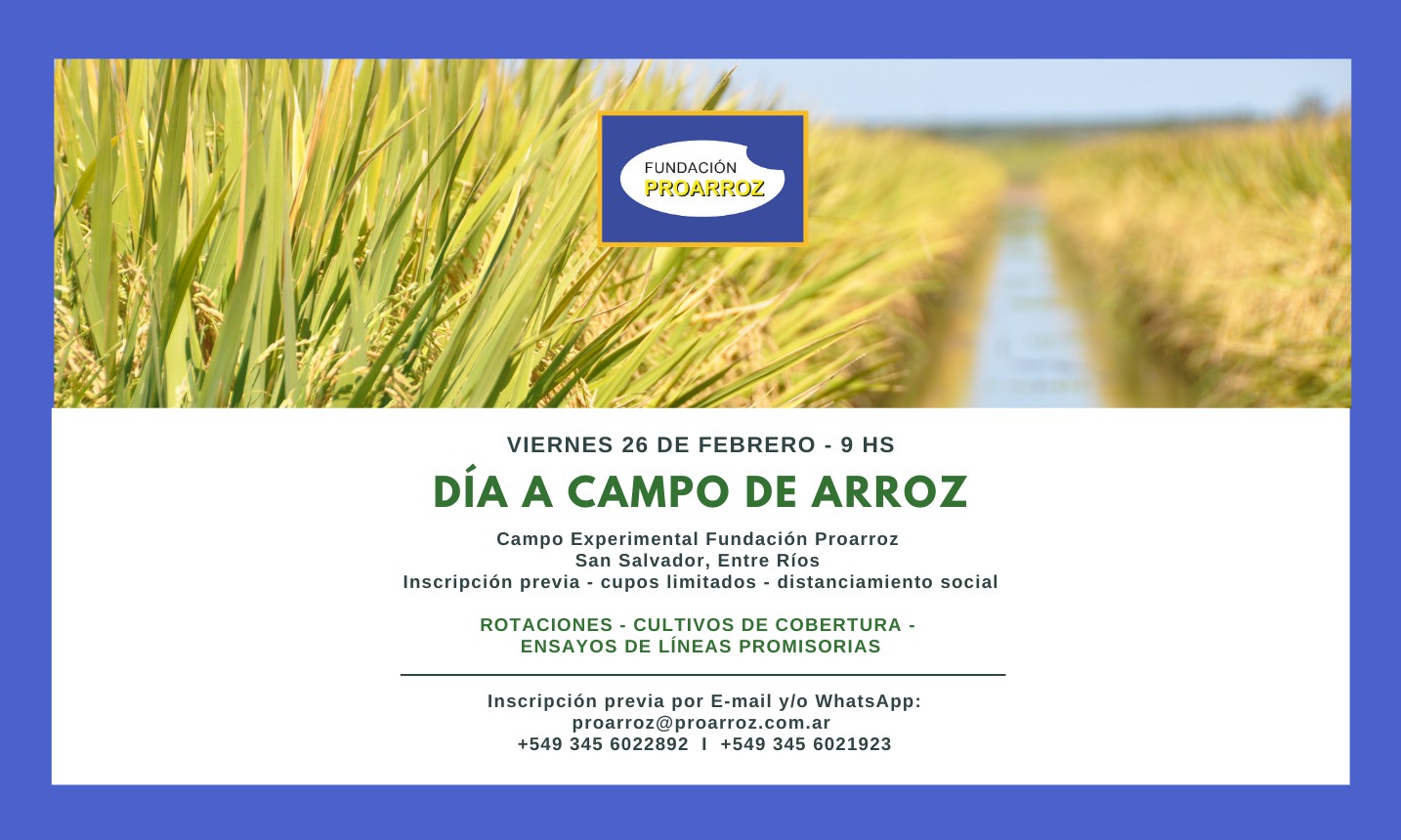 Con cupos limitados y distanciamiento social, se requiere inscripción previa por E-mail a proarroz@proarroz.com.ar o vía WhatsApp al +549 345 6022892 o al +549 345 6021923.
