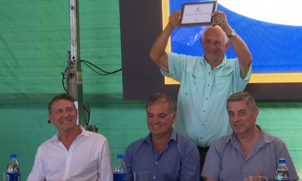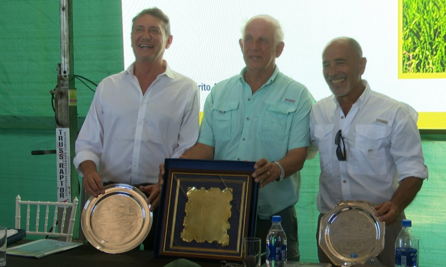 La agenda del día concluyó con la entrega de una distinción por parte de la Asociación Correntina de Plantadores de arroz y del Premio al Mérito Arrocero al Ing. Agr. Hugo Müller, presidente de Fundación Proarroz desde hace más de treinta años, en un homenaje cargado de