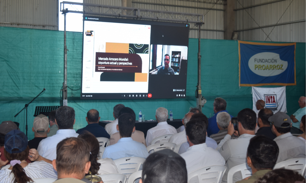 En el campo experimental, se presentaron nuevos cultivares y resultados de distintos ensayos. Luego disertaron otros especialistas, como el Dr. Alvaro Durand que brindó una charla sobre el mercado internacional del arroz.