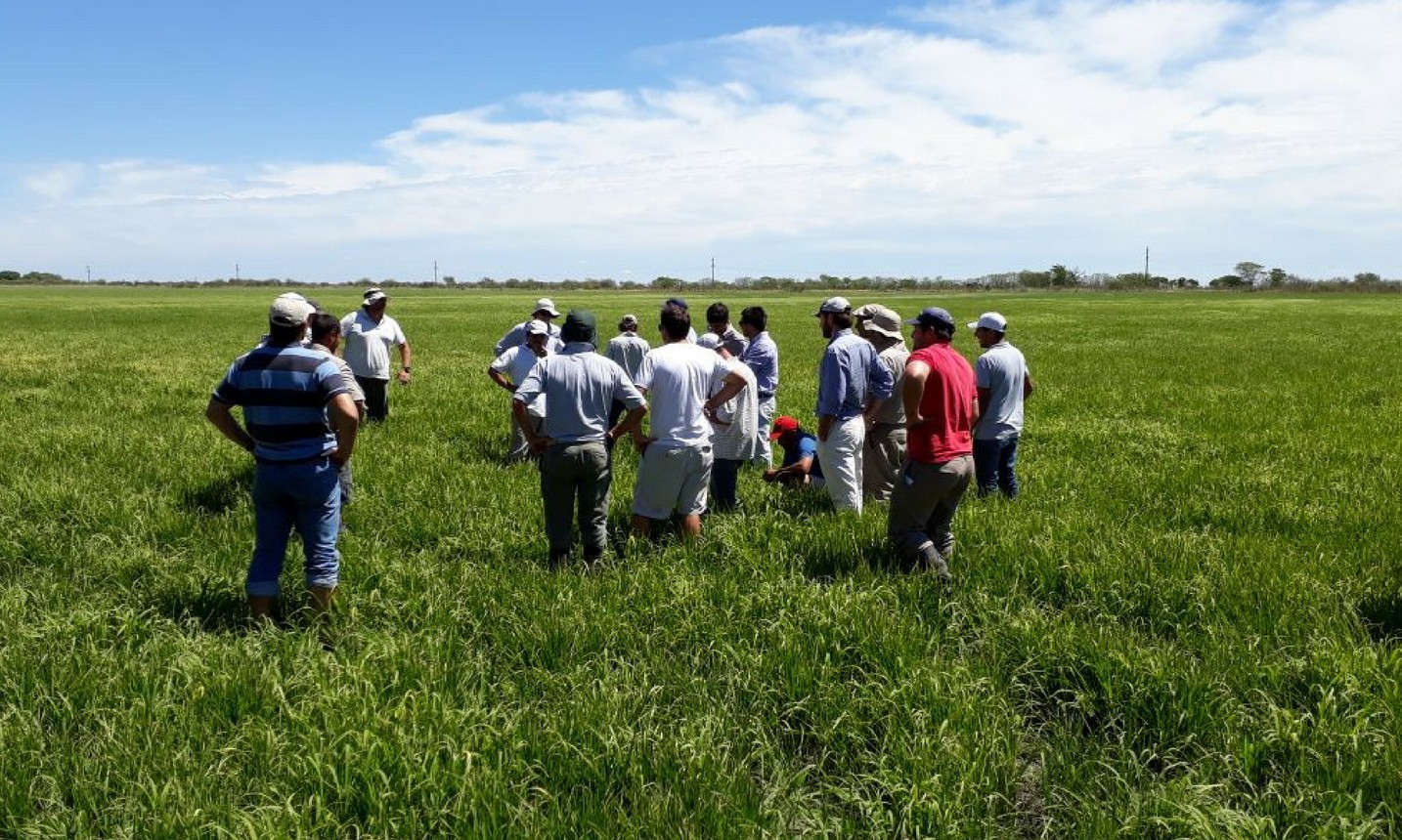En la mañana del 18 de enero se realizó una nueva recorrida por una serie de ensayos financiados por la Fundación Proarroz, con una nutrida asistencia de ingenieros y técnicos de las provincias de Entre Ríos, Santa Fe y Corrientes. En esta oportunidad, los ingenieros visitaron, con la guía de Joaquín Panozzo, el establecimiento Panozzo Hermanos en San Jaime, Entre Ríos, a fin de evaluar los ensayos en ejecución en dicho establecimiento. Se recorrieron ensayos de variedades, de fertilización y de técnicas de disminución de absorción de arsénico en el cultivo, a cargo del Ing. César Quintero, de la Facultad de Ciencias Agrarias de la UNER, y también aplicaciones del nuevo herbicida Loyant, de Dow, próximo a lanzarse en el mercado
